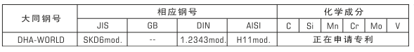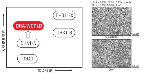 代替DHA1(JIS-SKD61相當)作為大型壓鑄模具可以放心使用的高信賴度通用熱作模具鋼。